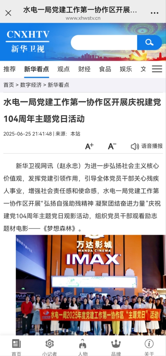 為進一步弘揚社會主義核心價值觀,發揮黨建引領作用,引導全體黨員干部關心殘疾人事業,增強社會責任感和使命感,水電一局黨建工作第一協作區開展“弘揚自強助殘精神 凝聚團結奮進力量”慶祝建黨104周年主題黨日觀影活動,組織黨員干部觀看勵志題材電影——《夢想森林》。